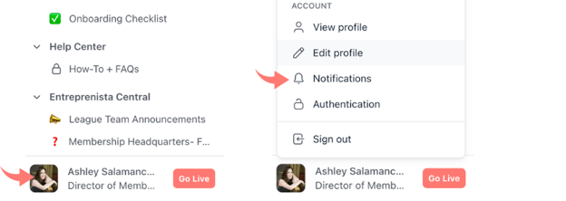 - Click your face to open the account menu and then click "notifications"