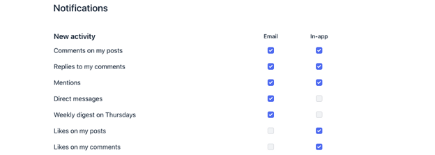 - As mentioned above, you can customize your email notifications from the account or space level within the community platform. Alternatively, if you receive an email you no longer wish to receive moving forward, you can always hit the unsubscribe button at the bottom of the email.